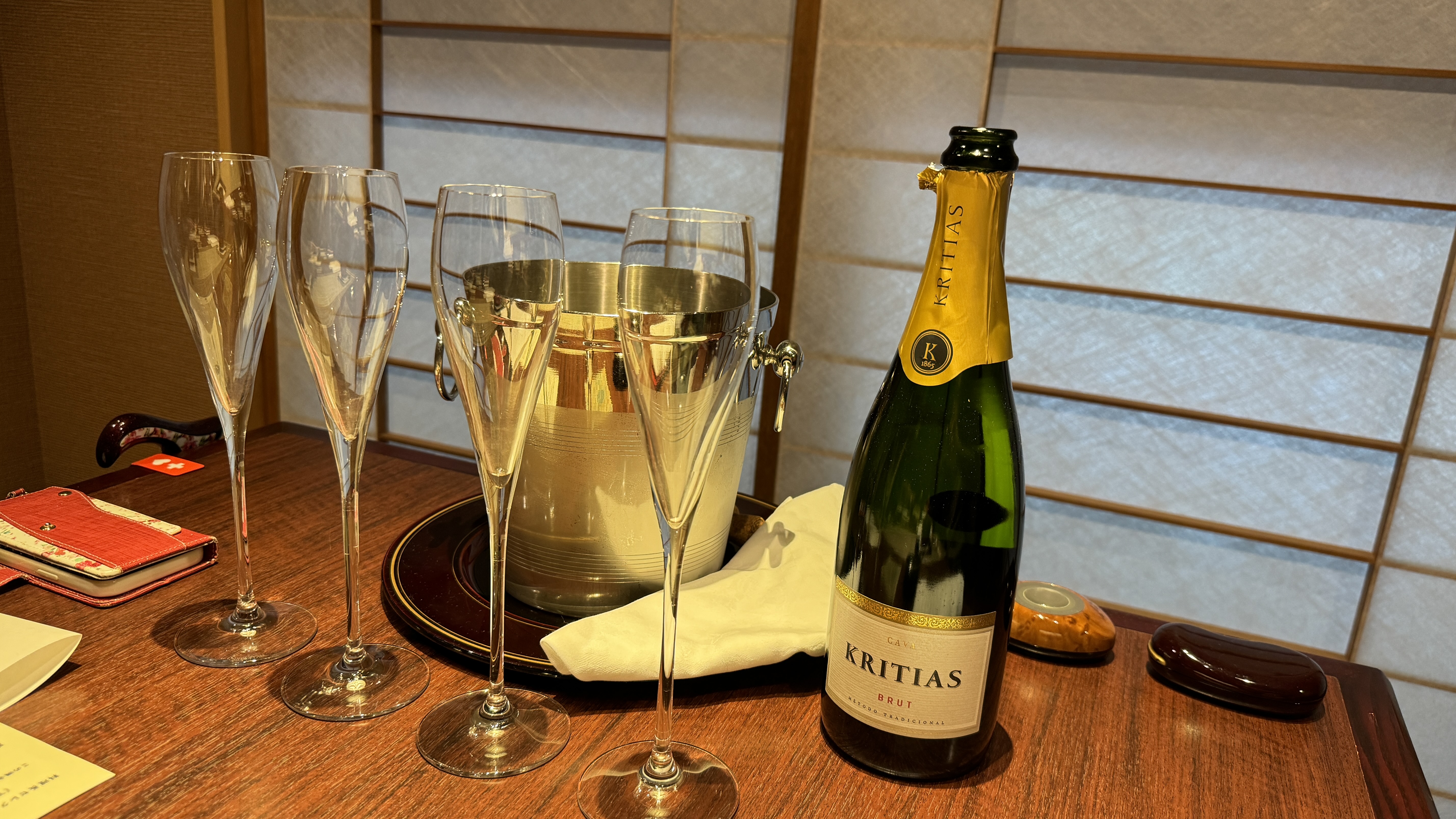 今回は親孝行の旅ってことで、乾杯にスパークリングワインを用意してもらいました。